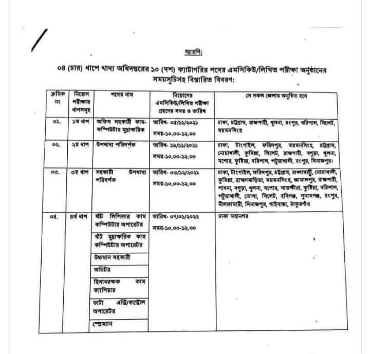 | ৭ | খাদ্য অধিদপ্তরাধীন নন-গেজেটেড বিভিন্ন শূন্যপদে নিয়োগের তারিখ ঘোষনা 2021 | | | ১৪-১০-২০২১ | দেখুন |